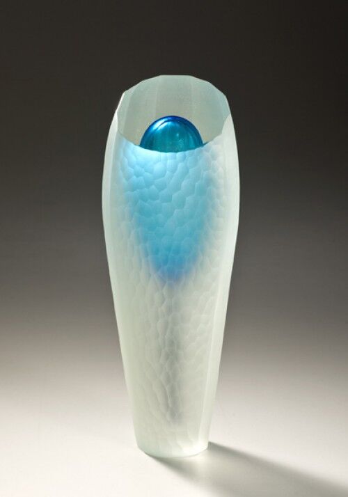 Hot blown glass, diamond wheel cut & sandblasted glass